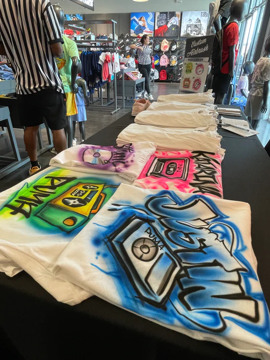 The interactive and artistic nature of live airbrushing draws people in, creating a unique and shareable experience that generates buzz and excitement around your brand. Whether it’s clothing, accessories, or other items, live airbrushing transforms your brand activation event into an interactive, visually captivating, and unforgettable experience that leaves a lasting impression on potential customers.