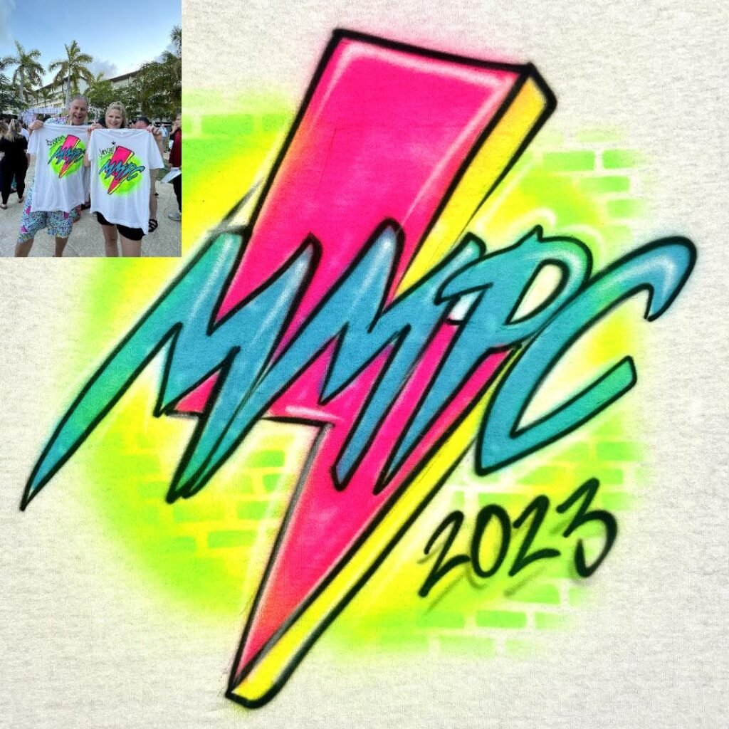 At this event we used Movement Mortgage Company logo to match their yearly trip! This year we joined them in Cancun, MX where we included names on their airbrushed shirts. We can change;